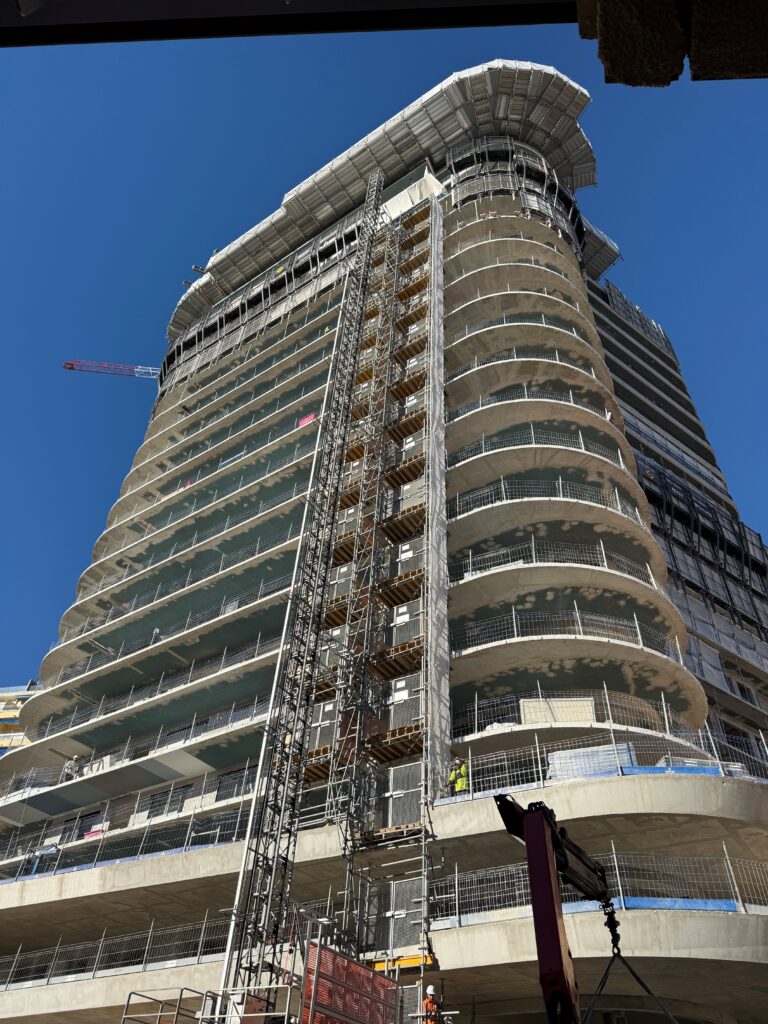 Afin d’optimiser la logistique des opérations, un échafaudage sera installé afin de relier les balcons au lift de chantier facilitant ainsi les déplacements de matériaux.